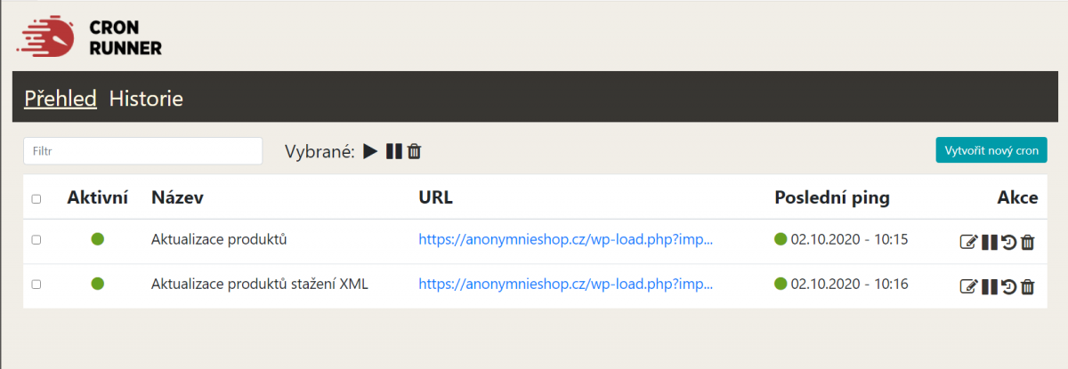 Cron služby v tomto případě šetří čas od ručního aktualizovaní XML feedu na příslušném exportu. Po zkopírování příslušné URL adresy ze záložky Cron úlohy v administraci Mergado Packu ji vložíte do Cron služby vašeho hostingu nebo do aplikace Cron Runner.