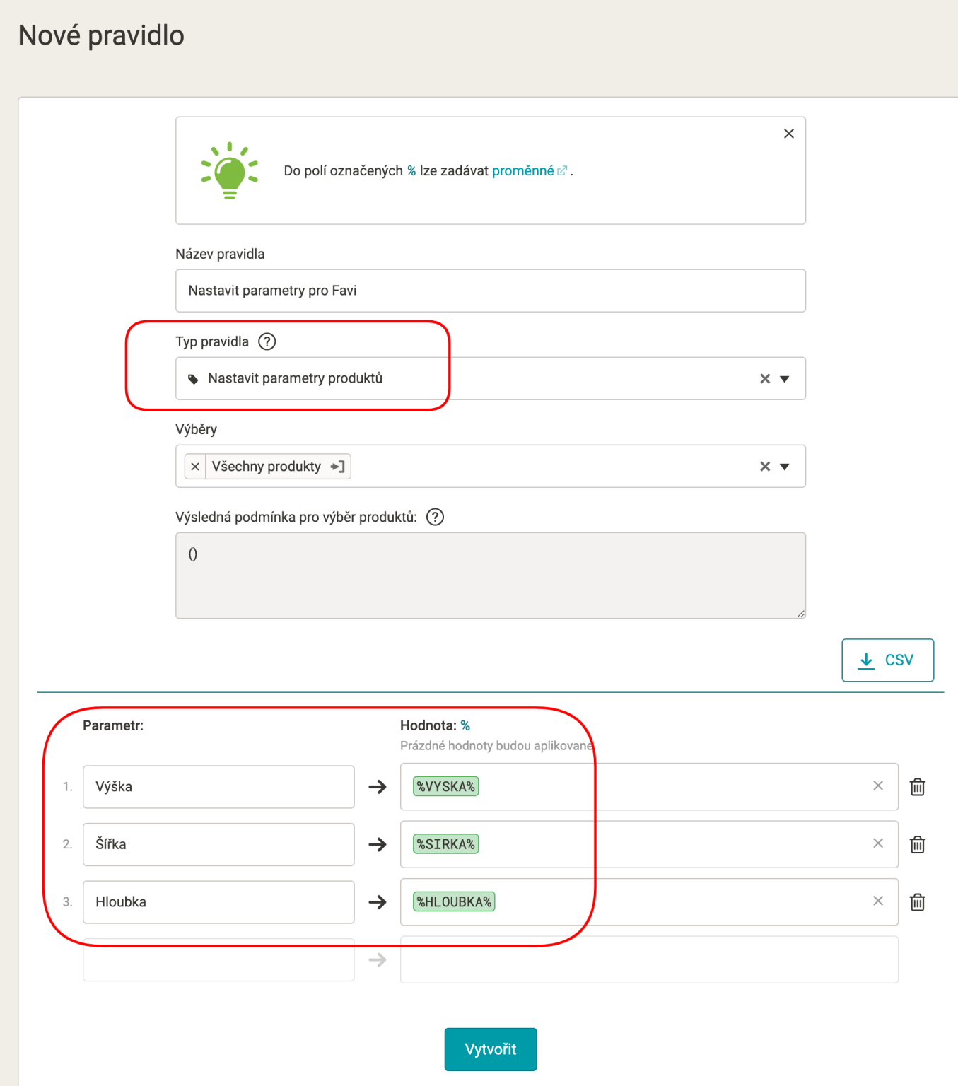 9. Pravidlo uložte a zkontrolujte na stránce Produkty.