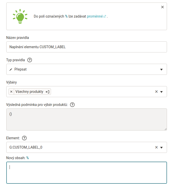 1. V Mergadu vytvořte nový element s názvem g:custom_label_0.