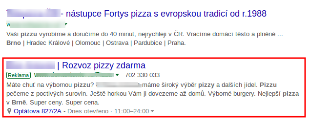 Reklamy ve Vyhledávací síti Google jsou textové reklamy, které se nachází nad (občas také pod) neplacenými výsledky vyhledávání a jsou označené štítkem „REKLAMA“. Díky tomu, že se spouští zadáním klíčových slov, oslovujete rovnou zákazníky, kteří mají o vámi nabízené zboží skutečný zájem. Výsledky těchto kampaní zaznamenáte prakticky hned.