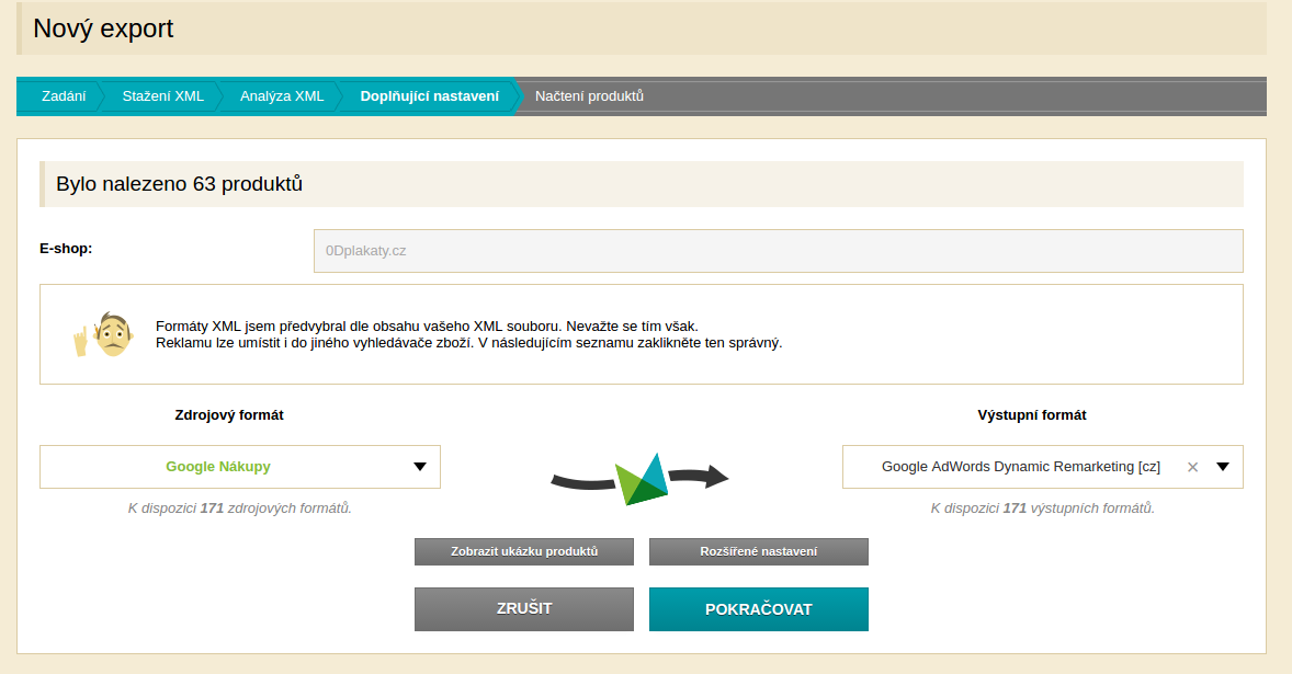 1. V první řadě je nutné vytvořit feed pro dynamické reklamy – standardní cestou v Mergadu z některého ze svých feedů převeďte data do formátu Google AdWords Dynamic Remarketing.